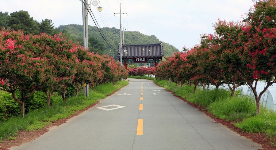 지금은 행정구역상 대구시 달성군 하빈면 묘리에 있는 묘골마을을 찾아갔다. 내가 묘골을 방문한 날은 폭염이 계속되던 한여름이었다. 꽃이 활짝 핀 배롱나무가 마을입구에서부터 사육신기념관까지 가로수로 길게 이어져있었다. 배롱나무는 나무줄기가 매끄럽지만 속이 꽉 차 있어 일편단심을 나타낸다하여 예전부터 사당이나 서원 등에 많이 심었고 선비들의 사랑을 받아온 나무이다. 한여름, 산과 들이 초록으로 덮일 때 배롱나무의 붉은 꽃은 초록과 가장 잘 어울리는 꽃이기도 하다. 오래전에 묘골을 방문했을 때보다 마을은 더 아름답게 가꾸어져 있고 고택들도 잘 정비되어 있었다. 마을 곳곳에는 사육신을 기념하는 건축물들이 국가 보물로, 문화재로 남아있다. 마을 입구에는 충절문이 서 있고, 마을 주민은 절개와 의리라는 뜻의 절의(節義)라는 단어, 우리가 거의 잊고 사는 이 단어를 일상어로 쓰고 있다.