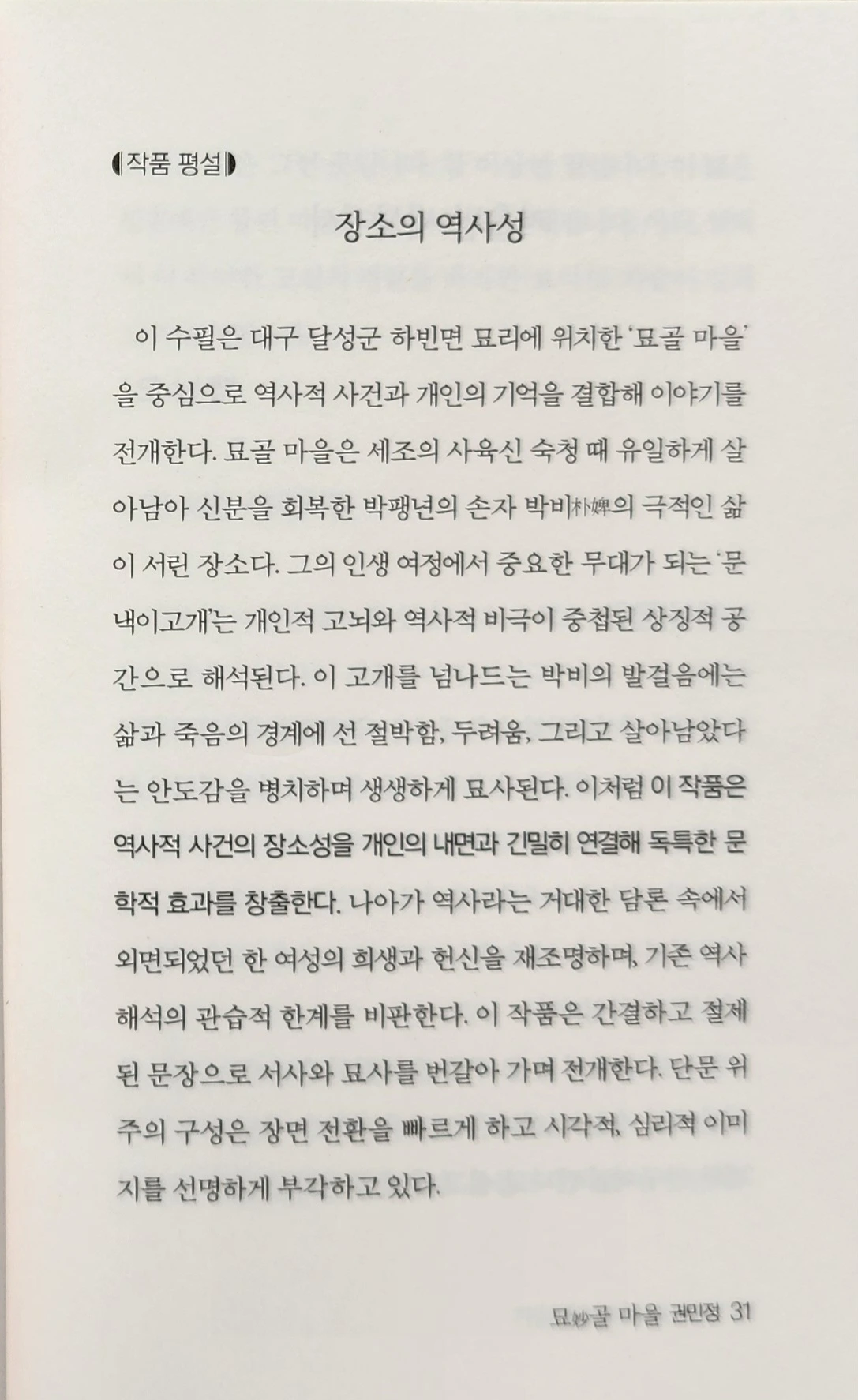 각각 수필 작품에 대한 간단한 평설이 붙어 있습니다.
