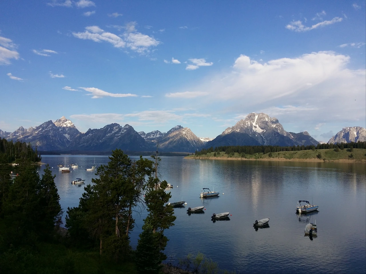 옐로스톤 국립공원으로 가기 전 설산과 호수가 아름다운 그랜드티턴 국립공원 내에 있는 숙소(lodge)에서 일박을 했다. 만년설로 덮인, 해발 3000m가 넘는 설산들이 병풍처럼 서 있고 그 앞으로는 거대한 코발트빛 호수가 바로 눈앞에 펼쳐진 곳이다. 거울처럼 잔잔한 호수 물에 그 풍경이 그대로 반사되어 더욱 멋진 풍광을 만든다. 산봉우리들 중 하나의 이름이 모란봉(Mt.Moran)이다. 옐로스톤과 그랜드티턴에 대한 그림을 남긴 것으로 유명한 풍경화가 토마스 모란의 이름을 따서 지었다고 하는데 이름 때문에 아이들이 특히 좋아하는 것 같다. 커피 한 잔을 들고 테라스에 앉아 바라만 보고 있어도 가슴이 벅찼다. ‘태초의 세상이 저러했을까?’