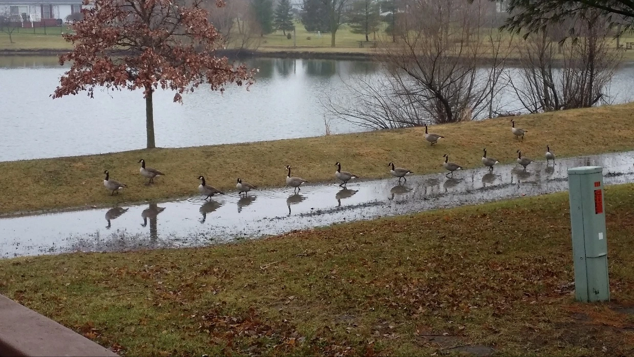 몸을 보호하는 깃털이 있으니 춥지 않겠지 하는 생각을 하면서도 차가운 얼음 위에서 머리를 깃털 속에 처박고 잔뜩 웅크리고 있는 것이 안쓰러워 보인다. 어제 낮, 남향인 집 앞 잔디 위로 햇빛이 쨍쨍 비춰 따뜻할 때 거위와 청둥오리 수십 마리가 햇볕을 즐기는 걸 보았다. 거위와 오리도 햇볕 쬐기를 좋아하나 보다.