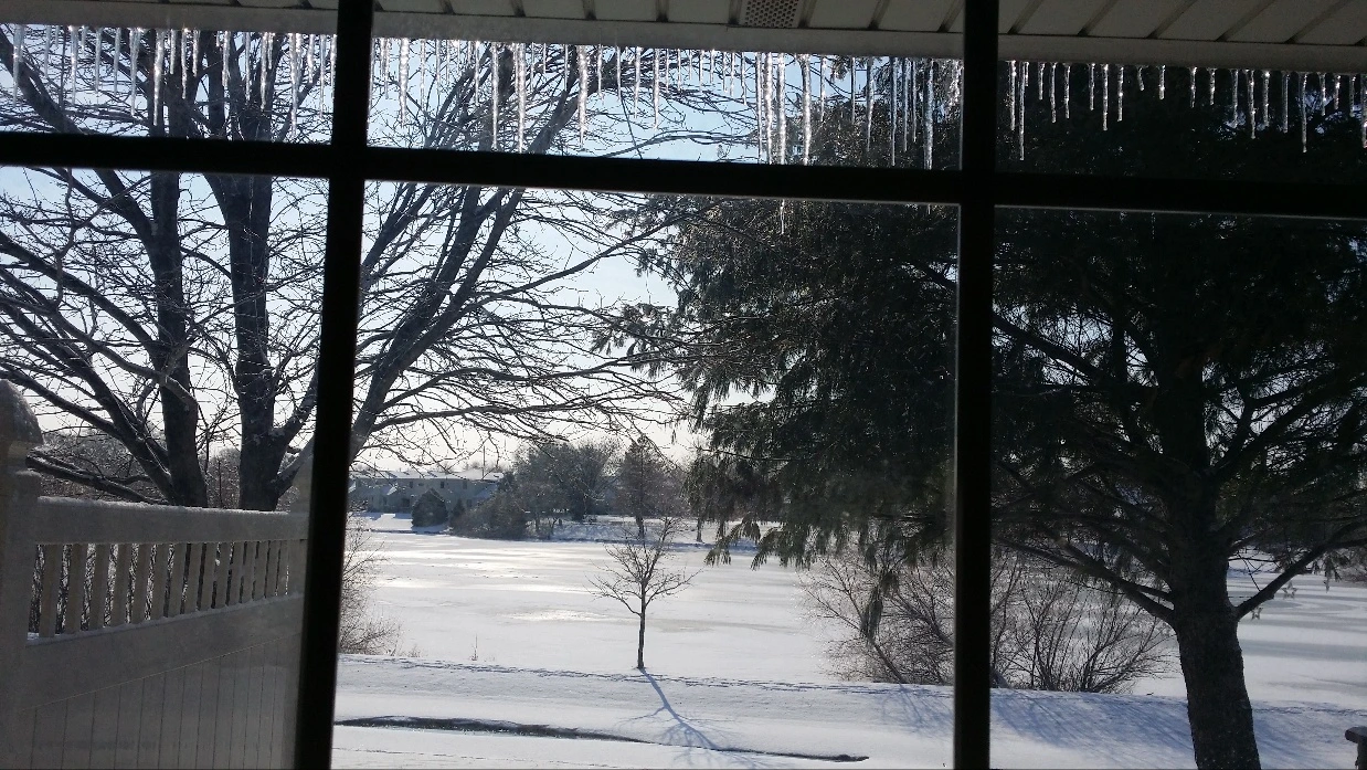 햇빛이 쨍쨍 내려쬐니 처마에서 고드름이 한두 개씩 떨어진다. 고드름이 굉장히 투명해졌고 햇빛에 보석처럼 반짝인다. 시간이 지날수록 고드름은 녹아 떨어지고 정남향인 집 베란다 앞 처마에는 달려있던 고드름이 거의 다 없어진다. 지붕에서 물이 뚝뚝 떨어진다.