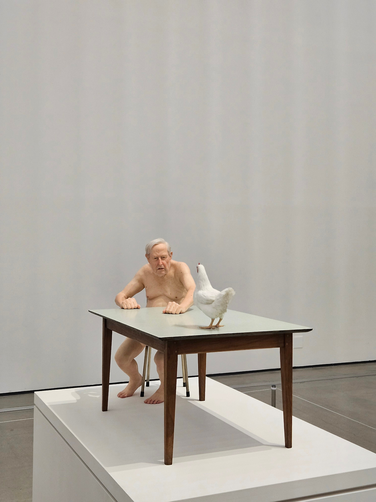 론 뮤익은 우리가 노인을 바라보는 시각처럼, 노인 또한 닭의 형태를 실제로 인지한다는 의미를 표현하고자 한 것이 아닐까 싶다.