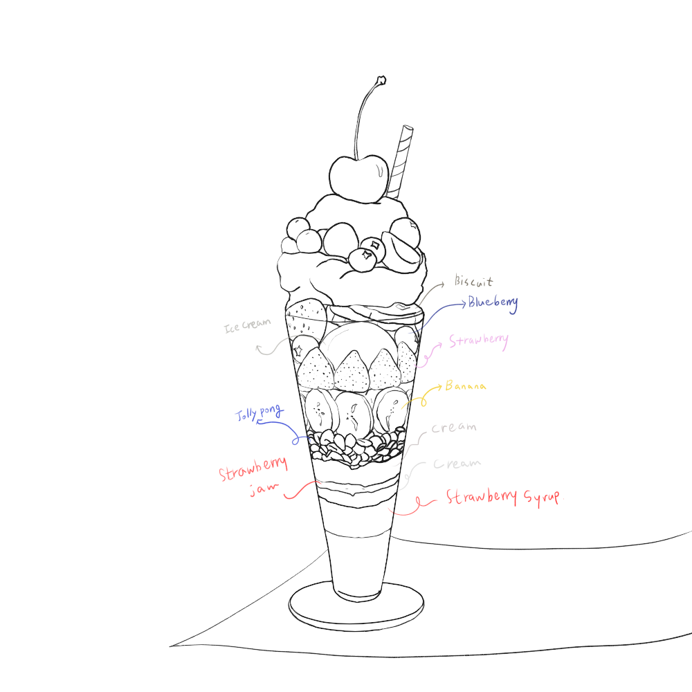 불투명한 수채화로 컬러풀한 파르페를 채워줘요.