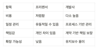 개발을 외주로 맡길 때 선택지는 주로 프리랜서와 개발사입니다.