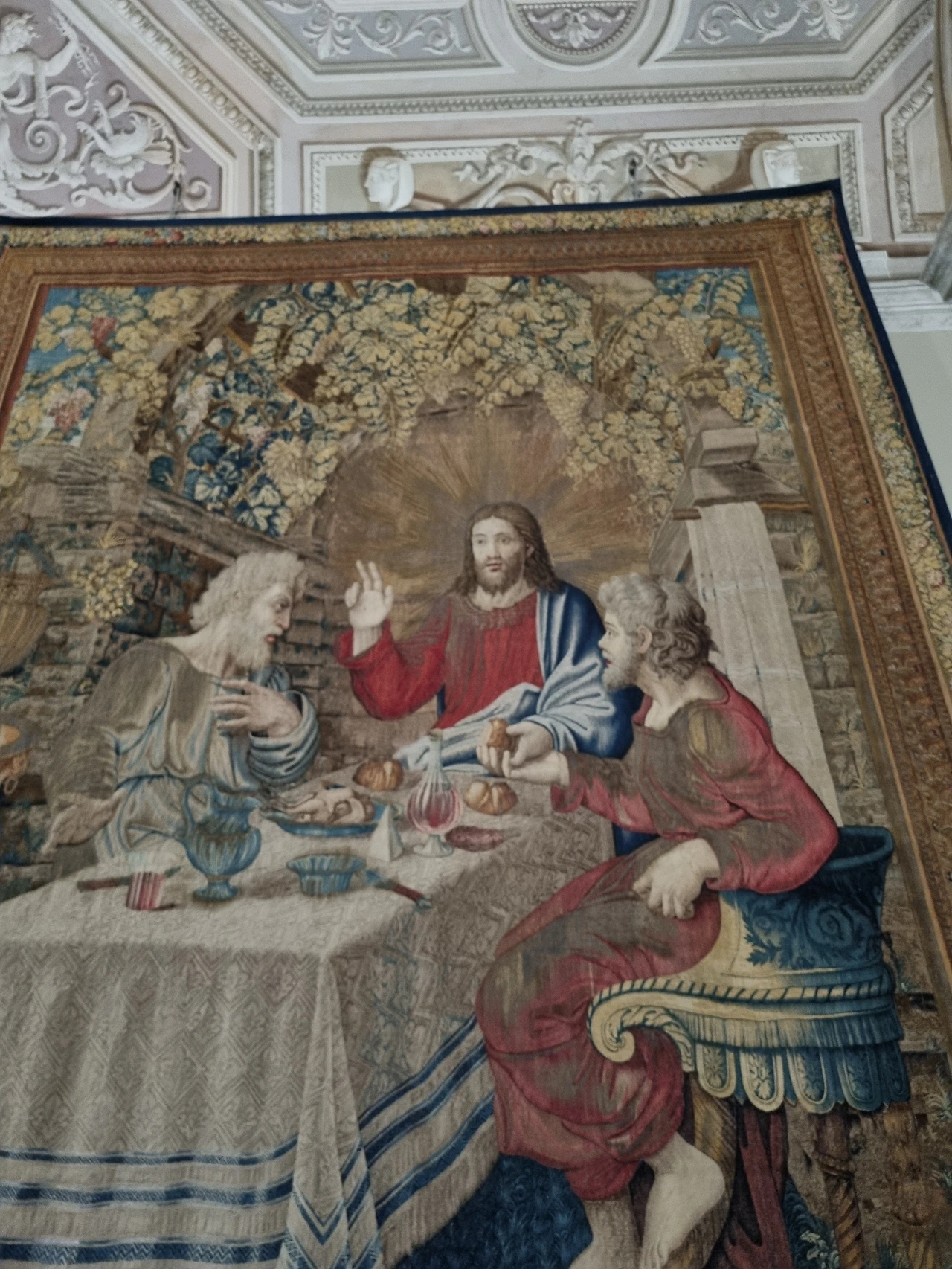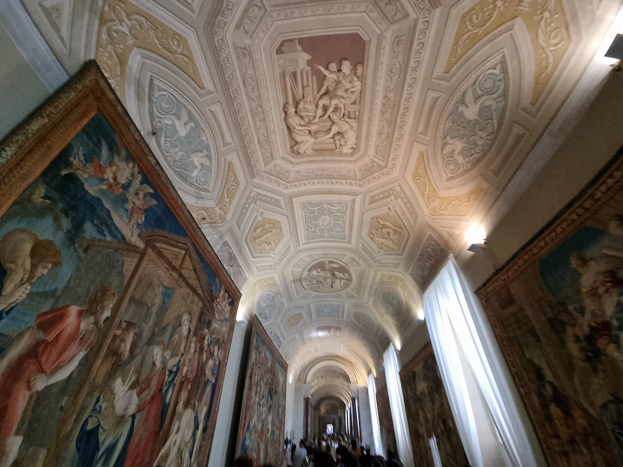 이곳은 예수의 일생이 주된 주제이다. 한 장면, 한 장면이 이 비단 속에 담겨있다. 이곳에서도 천장을 보는 것은 잊어선 안된다. 아주 아름답고, 입체적으로 보이는 천장화가 우리를 내려다보고 있기 때문이다. 천장화를 보던 당시엔 이 천장들이 '조각'된 줄 알았다. 너무 입체적이고 하얀색의 천장이 마치 촛대의 회랑에서의 석상 조각들과 같은 느낌을 받았기 때문이다. 추후에 알게 된 사실인데 이들은 트롱프 뢰유(Trompe-l'oeil) 기법을 활용한 작품이라고 한다. '속이다'라는 프랑스어에서 비롯되었다고 하는데 이렇게 단어로만 들으면 생소할지 몰라도 첨부한 사진들과 함께 이 기법이 무엇인지를 살펴본다면 바로 이해가 될 것이라고 생각한다.