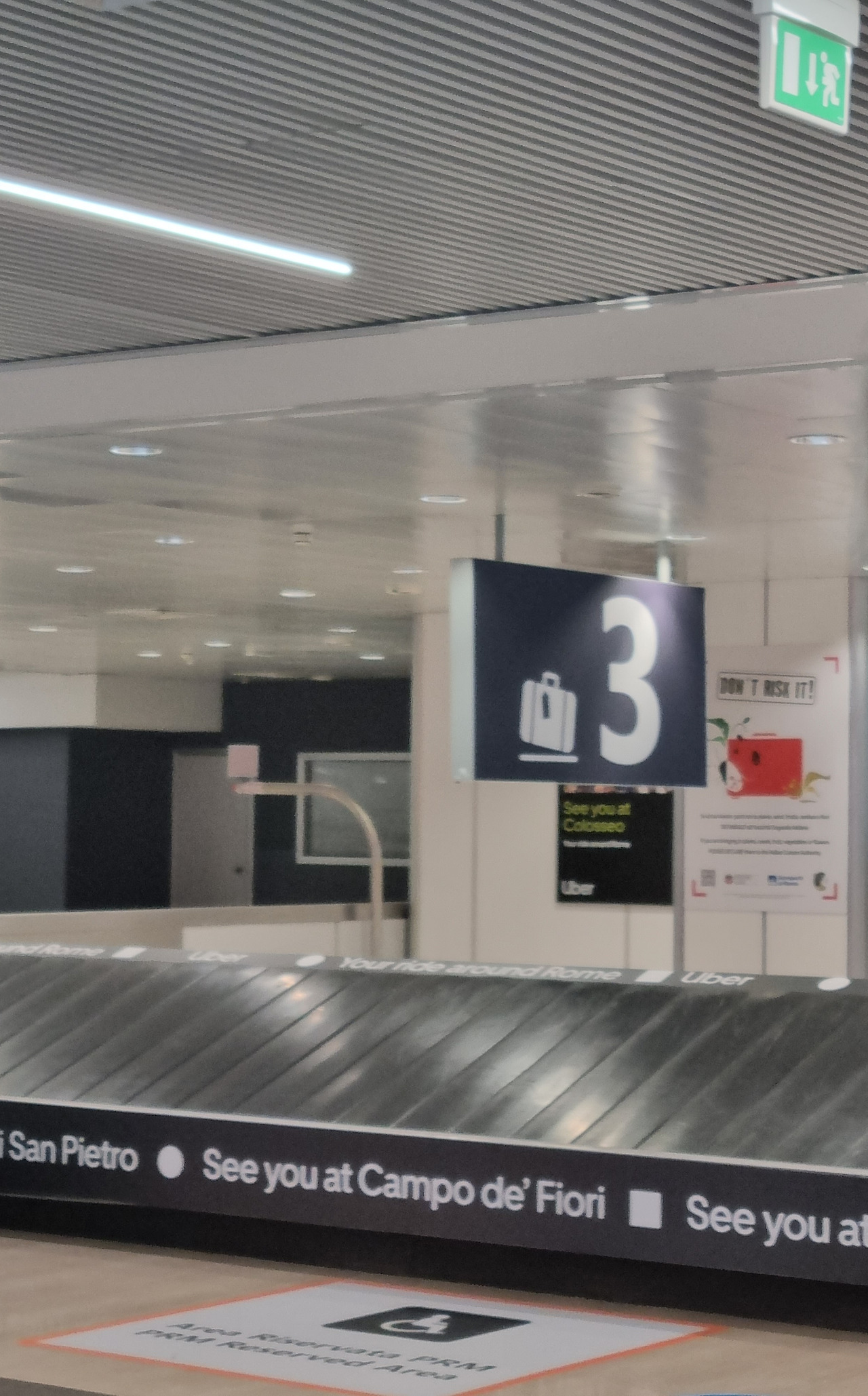 도착하자마자 이곳이 이탈리아임을 알 수 있었다. 입국 심사부터 두 남녀 직원이 수다를 떨면서 도장을 안 찍어주고 있었기 때문이다. 사람들이 좀 줄을 서는 듯하자, 마스크를 내리는 등의 과정 없이 도장을 찍고 통과하여 보내주었다. 내 동생은 불행하게도 이 두 직원이 중요한 이야기를 하고 있을 때와 겹쳤던 것이 분명하다. 나보다 훨씬 더 늦게 나왔기 때문이다.