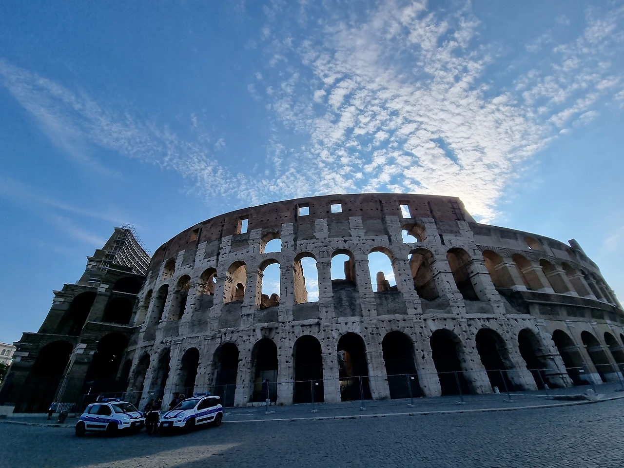 콜로세움은 우리 모두 너무 많이 접한 존재이기 때문이다. 교과서부터, 인터넷, SNS, 하다못해 광고 등에도 허다하게 콜로세움을 우린 접했다. 그렇다 보니 실제로 콜로세움을 보더라도 별 감흥이 없을 수도 있다. 이탈리아를 좋아하는 나라고 할지라도 처음 콜로세움을 볼 때, 방방 뛰고.. 그런 것은 아니었다. 그 분위기가 중요한 것이다. 교과서에선, 책에선, SNS에선 느낄 수 없는 분위기, 푸르고 화창한 날씨, 뜨거운 햇살이 살에 닿는 느낌, 따뜻하게 들어오는 공기, 시끌벅적한 관광객들의 소리 그리고, 그리고 마지막에 콜로세움인 것이다. 직접 와야만 경험할 수 있는 요소들이 얼마나 우리와 나를 자극시킬 수 있는가. 그것에 따라 여행지의 인상이 달리지는 것이다. 그런 점에서 나의 콜로세움은, 처음 볼 때보다 두 번째 볼 때, 더욱 거대하고 웅장해진 느낌이 되었다. 16년도엔 콜로세움을 제대로 담아내지 못한 느낌인데, 이번엔 광각 렌즈를 적극 활용하면서 잘리는 부분 없이 전체를 다 담아내었다. 광각 렌즈 사용으로 인해 생겨난 왜곡은 콜로세움이 이전의 기억에서의 모습보다 더 크게 느껴지게 만들었다. 사람이 적다 보니, 더 가까이에서 가려지는 부분 없이 전체적인 모습을 볼 수 있던 것도 한 몫했다. 그렇게 나는 더 업그레이드된 콜로세움의 모습을 나의 기억에 저장하게 되었다.