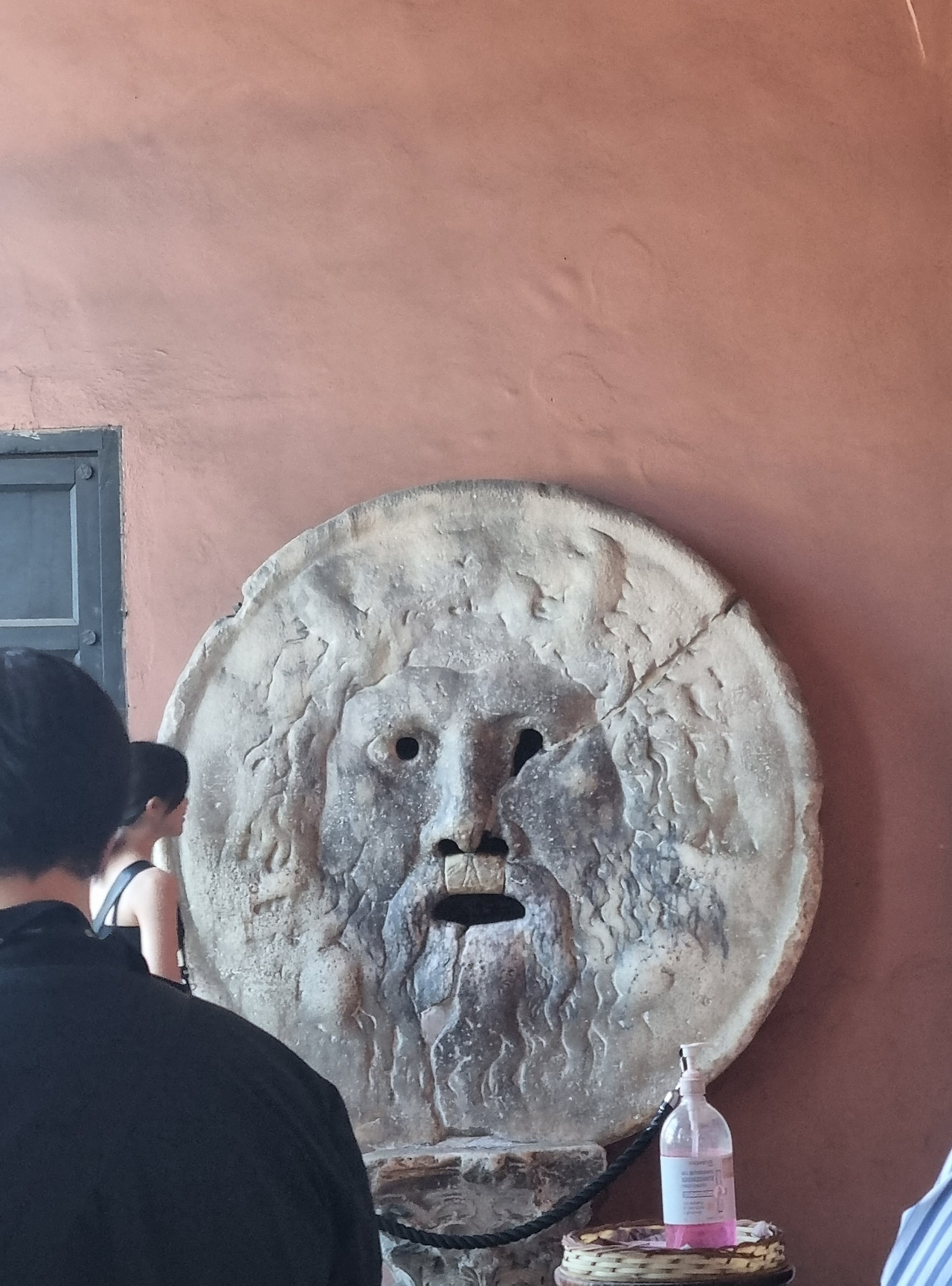 본래 진실의 입은 하수구 뚜껑이었다고 가이드가 이야기를 했다. 그러면서 진실의 입과 얽힌 이야기를 해주었는데, 이는 로마 시대 노예와 그 주인의 관한 내용이었다. 음식을 훔친 것으로 의심이 가는 노예가 있었는데, 무턱대고 처벌할 순 없으니 '진실의 입'이라는 걸 만들어두고 그 입 뒤에선 주인이 노예의 이야기를 들으며, 손을 잘라버렸단 것이다. 그걸 모르고 노예들은 진실의 입 앞에서 거짓을 말하면 손이 잘린다고 생각하며 두려움에 떨며 진실만 말하고 주인에게 더 복종하게 되었다고 한다. 진실의 입은 특히 영화 <로마의 휴일>을 통해 더 인기를 얻었다.