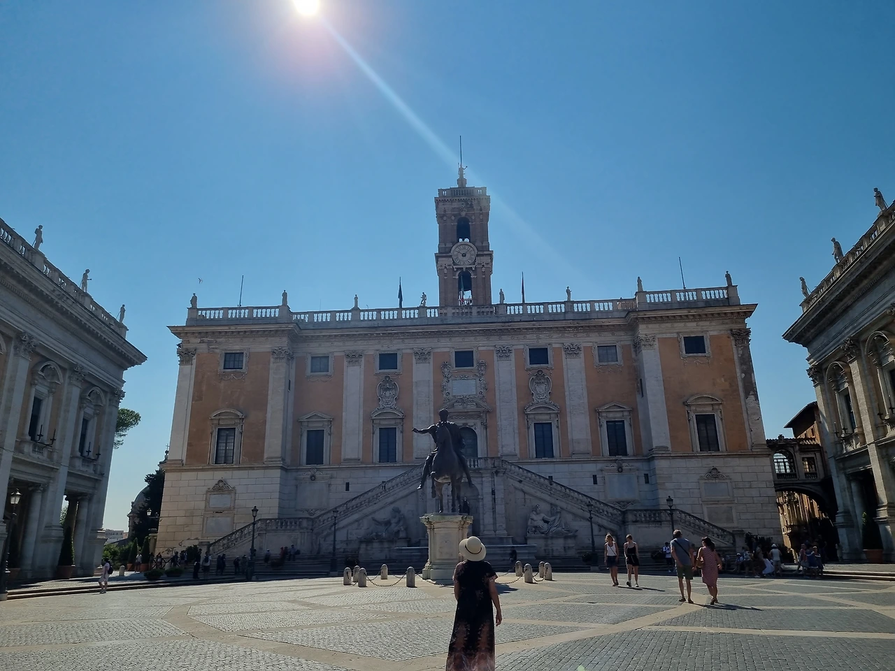 프로 로마노가 한눈에 보이는 언덕을 지나자, 우릴 또 반겨주는 건 다름 아닌 미켈란젤로가 설계했다고 알려진 캄파돌리오 광장이었다. 과학적이고 아름답게 설계되었다고 알려진 이 광장에서의 풍경은 충분히 아름답지만, 이 광장을 하늘에서 내려다볼 때 더욱 그 아름다우며, 미켈란젤로의 과학적인 설계가 느껴진다고 한다. 그의 작품은 정말 다양하지만, 이런 광장의 설계에서도 그의 천재성을 느낄 수 있어서 매우 인상 깊었다.