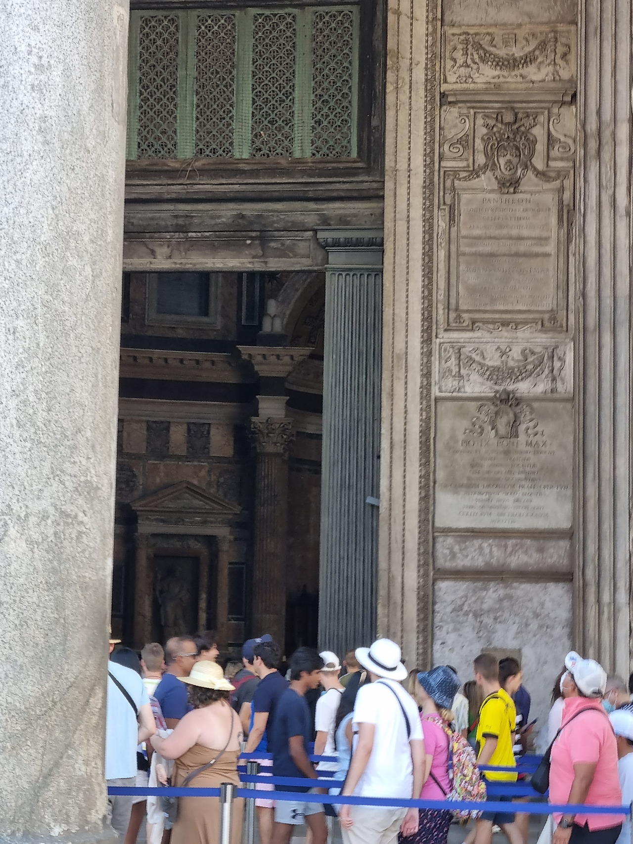 스페인 계단에서의 시간 이후, 다시 빠르게 이동하였다. 그리고 우리가 도착한 곳은 바로 로마 판테온이었다. 이탈리아의 위인이 잠들어 있는 곳이다. 프랑스의 판테온도 마찬가지이다. 이 판테온이 더 의미가 있는 것은 바로 돔 형태의 천장 때문이다. 그리고 가운데 뚫려있는 구멍, 그것 때문에 이 건축양식에 대해 더욱 감탄하게 된다. 그러나 당장 피부로 느껴지며 감탄하게 되는 것은 이곳을 들어가기 위해 길어 늘어진 줄이다. 그리고