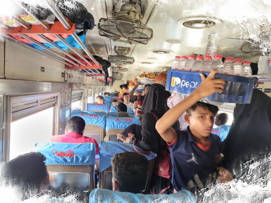 이렇게 많은 상인들이 좁은 기차 안을 헤집고 다니지만 아무도 불평하지 않습니다. 오히려 그들이 지나갈 때면 길을 비켜주기도 하고 지나가는 상인을 불러 세워 물건을 사기도 합니다. 저는 너무 많은 상인들이 다녀서 잠깐 짜증이 났습니다. 도대체 얼마나 많은 사람들이 다니는지 세어봤습니다. 1분에 한 명꼴로 지나다녔으니 승객보다 상인이 더 많은 건 아닌지 모르겠습니다. 그래도 승객들은 서로가 다 아는 사람처럼 자연스럽게 말을 합니다. 나만 빼고 모두 낯익은 사람들 같았고, 이미 모습이 다른 나를 이방인으로 여기고 슬쩍슬쩍 쳐다보는 게 전부입니다.