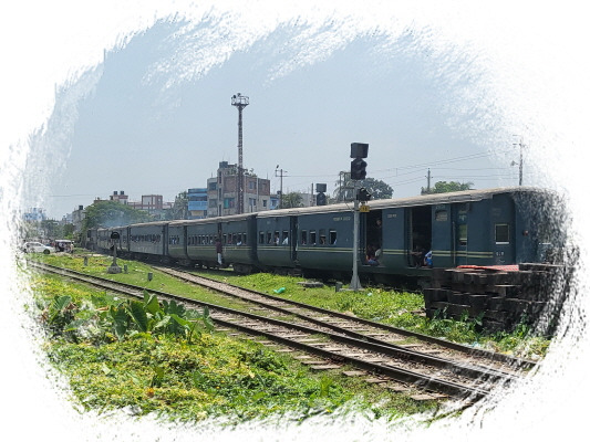 잠시 후 제가 서 있는 자리로 아이들이 비집고 들어왔습니다. 예닐곱 살 된 여자아이는 두 갈래로 머리를 묶었습니다. 남자 이이는 반소매 옷에 비싸 보이는 검은 구두를 신었네요. 엄마는 아주 젊었는데 비행기 안에는 들고 가지 못할 큰 검은색 천으로 된 캐리어를 내 앞에 눕히고 아이들을 앉게 했습니다. 그러고는 밖을 물끄러미 쳐다보며 무심한 손짓만 해댔습니다. 나도 쳐다봤죠. 철길에는 초로의 여성이 철로를 낮은 의자 삼아 다리를 벌리고 앉았고, 그 옆에는 앳된 아가씨가 한쪽 발은 슬리퍼를 벗어 철로에 올린 채 바닥만 보고 있었습니다. 이들 삼각관계는 아무런 말없이 그저 잠시 쳐다보고 눈을 내리깔기를 반복했습니다. 누가 먼저 말을 해야 하는데 뭐라 말할 수는 없고, 광고에 나왔던 거 기억하시나요. “정말 좋은데, 어떻게 표현할 방법이 없네. 직접 말하기도 그렇고.” ‘직접 말하기도 그렇고’ 이런 눈치 보기가 계속됐습니다. 시간이 돼도 기차는 떠날 생각이 없어 보였습니다. 뭐 방글라데시가 언제나 그랬으니까 이제 그런 건 별로 신경도 안 쓰지만요. 밖에 나가보니 기름을 넣고 있네요. 하, 이런! 하며 플랫폼 시멘트 의자에 앉으려니 넘어가는 해가 얼굴을 비쳐 그냥 있을 수가 없었습니다. 할 수 없이 열차 안으로 들어왔습니다.