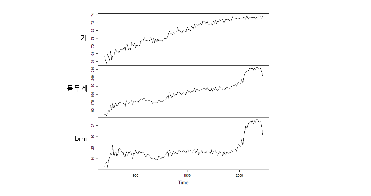 그림 1. MLB 야구 선수들의 키, 몸무게, BMI