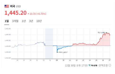 2025년 12월 30일 3시 30분. 7일 간의 치열한 환율 전쟁이 막을 내렸다. 아마도 시작은 어느 날 문득 환율 그래프가 꽤 가파르게 우상향 하고 있음을 깨닫게 된 순간일 거다 (그림1).