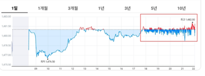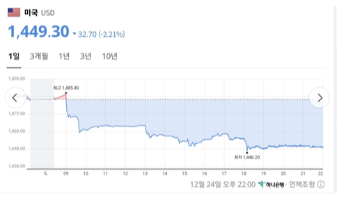 정부, 기업, 가계 부채나 거시경제 지표 같은 거창한 걸 알고싶지 않은 개미들 눈에도, 달러가 비싸지는 게 보였다. 입에서 입으로 소문이 퍼졌다. 2025년 12월 22일, 1480원을 두고 벌어진 싸움의 흔적이 인터넷에 떠돌았다 (그림4).