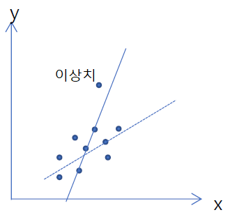 그림 1. 이상치가 있을 때와 없을 때, 크게 바뀌는 두 직선