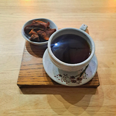 우와. 음악실을 들어서자마자 처음으로 내뱉은 말은 짧은 감탄사였다. 아늑한 조명에 곳곳에 놓여진 LP와 스피커들. 음악 감상이 취미여서 하나씩 모으다 보니 이런 근사한 공간을 만들게 되셨다는 사장님의 말씀에 따라 공간 안은 오롯이 음악 감상에 집중하기에 최적화되어 있었다. 이곳에서 사장님이 직접 만드셨다는 곶감과 손수 내려 주신 커피를 마시며 음악을 듣는 1시간 반 동안 정말 많은 생각이 스쳤고, 질 좋은 휴식을 취했다. 평소 음악 듣는 것을 좋아하는지라 고음질로 내가 좋아하는 취향의 음악을 양껏 듣는 이 시간이 하동 여행 중 최고의 시간이었다고 해도 과언이 아니다. 사실 차를 마시며 내 머릿속을 들여다보는 시간도 좋았지만 이렇게 음악에 잠긴 채로 따뜻한 조명에 둘러싸여 앉아 있자니 더더욱 고요하고 깊게 내 마음속을 들여다볼 수 있는 시간을 가지게 된 것 같아 정말 감사한 시간이었다. 스피커 옆에 마침 삼각대가 있기에 음악 감상을 하는 내 모습을 찍어 보고 싶다는 생각이 문득 들어 하이퍼랩스 영상을 찍게 되었다. 브이로그 감성으로 잘 담겼으려나? 기대하는 마음으로 몇십 분짜리의 시간이 1분 미만으로 압축된 영상을 보는데, 내가 원하는 감성이 전혀 안 담겨서 웃픈 스토리가 있었다. 음악에 맞추어 고개를 까딱거리는 모습과 가사를 따라 부르는 모습이 빠르게 재생되어서 마치 신들린 사람처럼 담겨 있어서 감상에 푹 젖어 있던 나를 빵 터뜨리는 순간이었다.