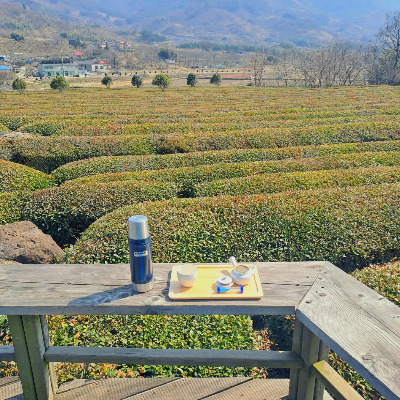 아, 내가 이걸 위해 하동에 왔구나! 원래라면 평소대로 찌뿌둥하게 일어나 점심 먹고 사무실에 퀭하게 앉아 있어야 할 시간에 햇빛을 마음껏 쬐면서 차를 마시고 있다니. 다원에 와서 차 한 잔을 시켜 놓고 차밭이 잘 보이는 야외 좌석에 앉아 일광욕을 하자니 이것이야말로 진정한 힐링이구나 싶었다. 아직 겨울과 봄 사이의 계절이었는데, 이 날은 유난히 봄스러운 날이었다. 겉옷을 벗어도 될 만큼 따스한 햇빛과 시원하게 불어 오는 바람. 얼마나 시원하게 부는지 작은 물건이 휙 떨어져서 본의 아니게 차밭 사이를 모험하기도 했다. 여태까지는 하동 적응기였다면 이제는 완전히 긴장을 푼 채로 잠시나마 생각에 잠길 수 있었다. 생각에 잠기기보다는 명상에 더 가까웠을까? 가만히 앉아 푸른 풍경을 바라보며 머릿속에 떠오르는 이러저러한 생각을 관찰하고 있자니 그제서야 조금씩 속이 비워지는 느낌이 들었다. 아, 그래. 내가 진짜로 퇴사했네. 처음 제대로 실감하는 순간이었다. 그 굴레에서 벗어나 휴식다운 휴식을 하고 있구나. 내가 시킨 차는 우전 녹차였는데, 녹차에도 찻잎을 딴 시기에 따라 종류가 나뉘어져 있다는 사실을 하동에 와서 처음 알았다. 우전 녹차는 4월 말 이전의 이른 봄 시기에 딴 찻잎으로 만든 것으로 맛이 은은하고 순하다고 한다. 실제로 마셔 보았을 때 정말로 은은하고 부드러운 맛이 나서 깜짝 놀랐다. 여태 티백으로 마셔 본 녹차는 하나같이 다 혀끝이 말릴 정도로 쓴맛을 지니고 있었는데, 역시 하동 녹차는 다르구나 싶었다. 녹차라떼에서나 느껴 보았던 부드러움을 여기서 느껴 보다니. 앉은 자리에서 녹차만 5번을 우려 먹었다.