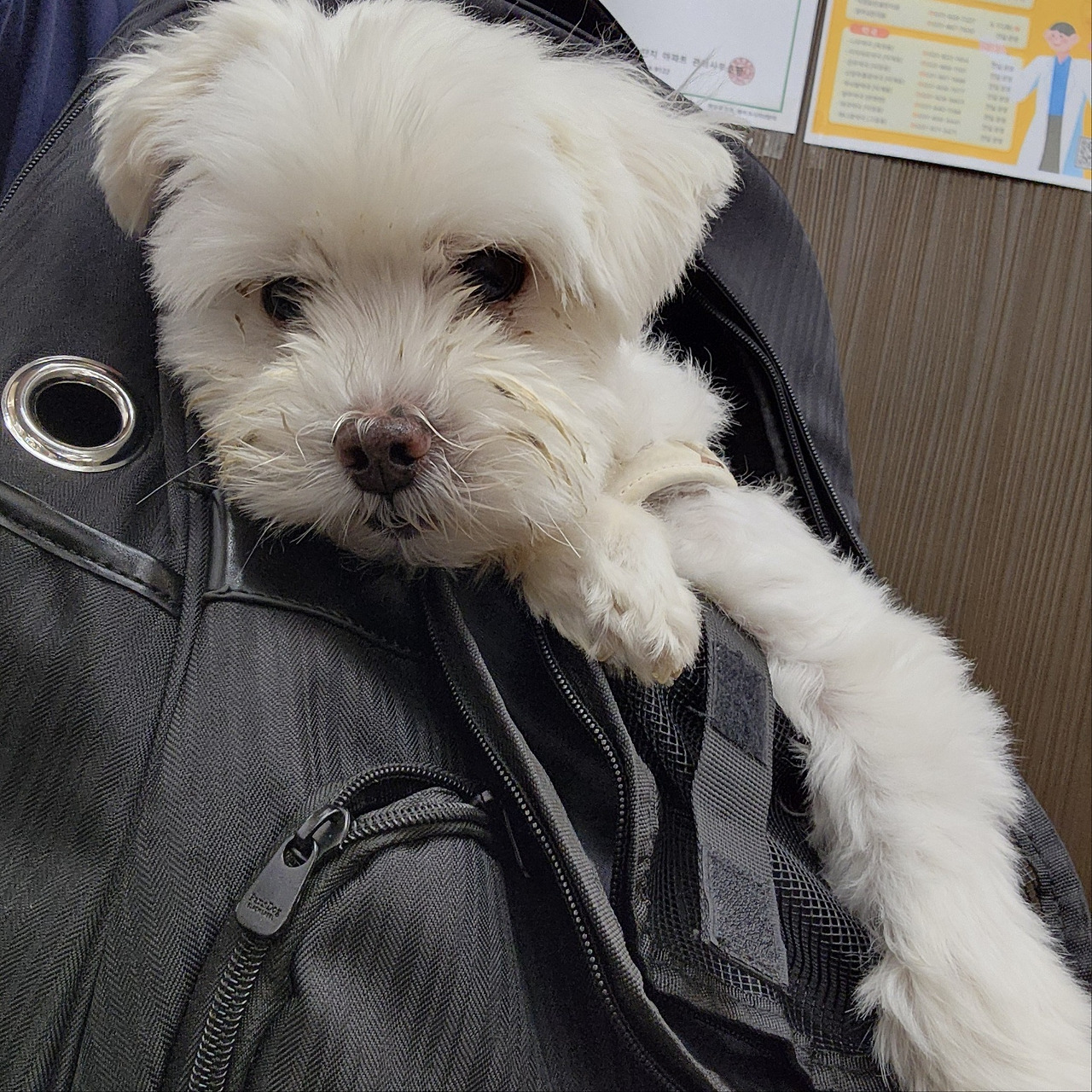 산책도 좋아하는데 스스로 걷는 거리 반 캐리어에 실려 다니는 거리 반이다. 3.5kg인데 캐리어에 넣고 짊어지고 걸으면 무겁다.