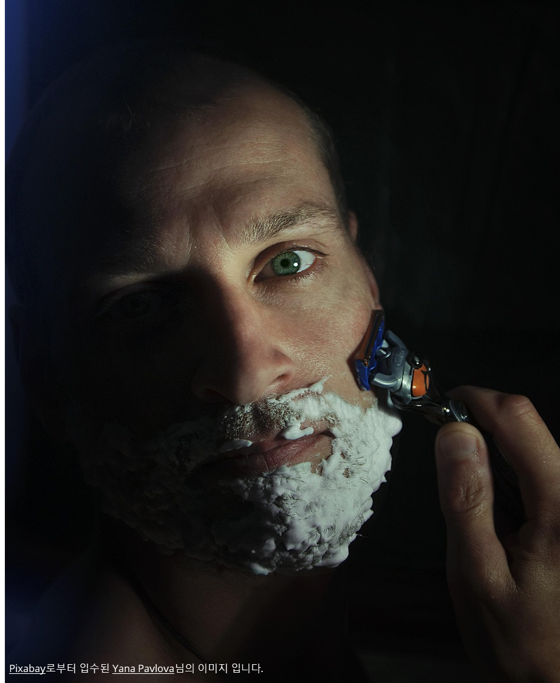 면도 전 충분히 거품을 바르고 수염을 불리기