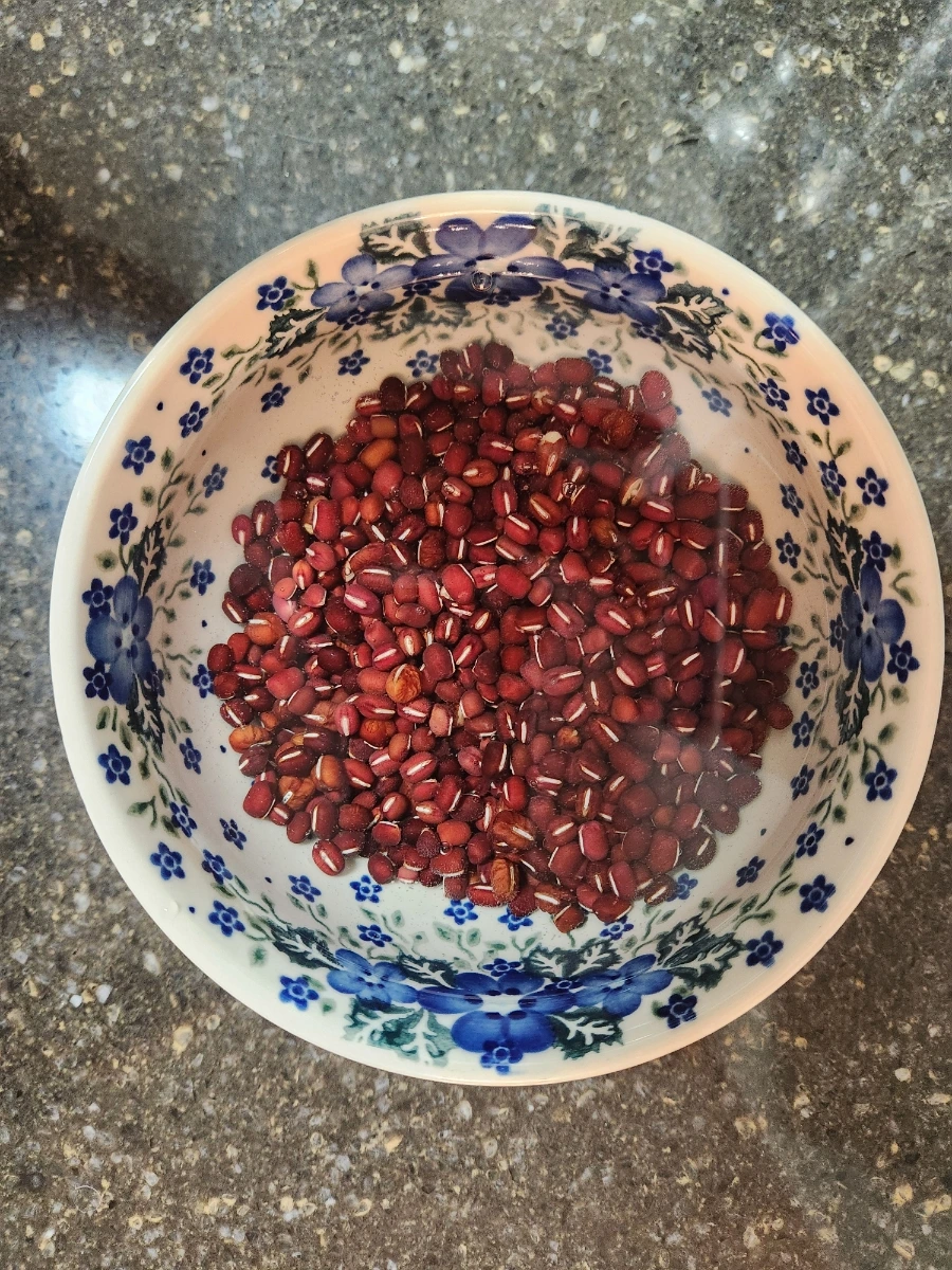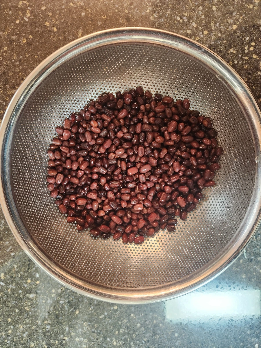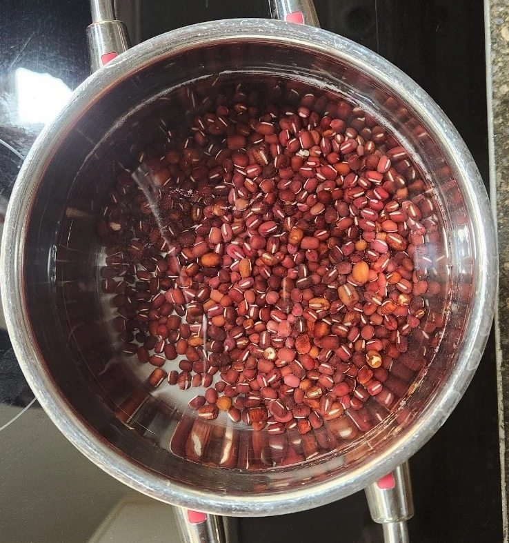 팥을 한번 끓이고, 물을 버린다. 물 2컵, 소금 약간을 넣고 40분 이상 또 끓인다.