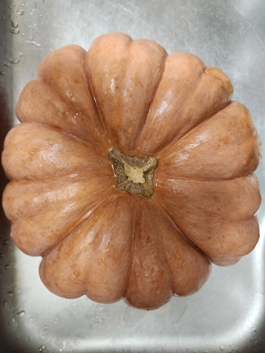 호박(특히 골)을 흐르는 물로 깨끗이 씻는다.