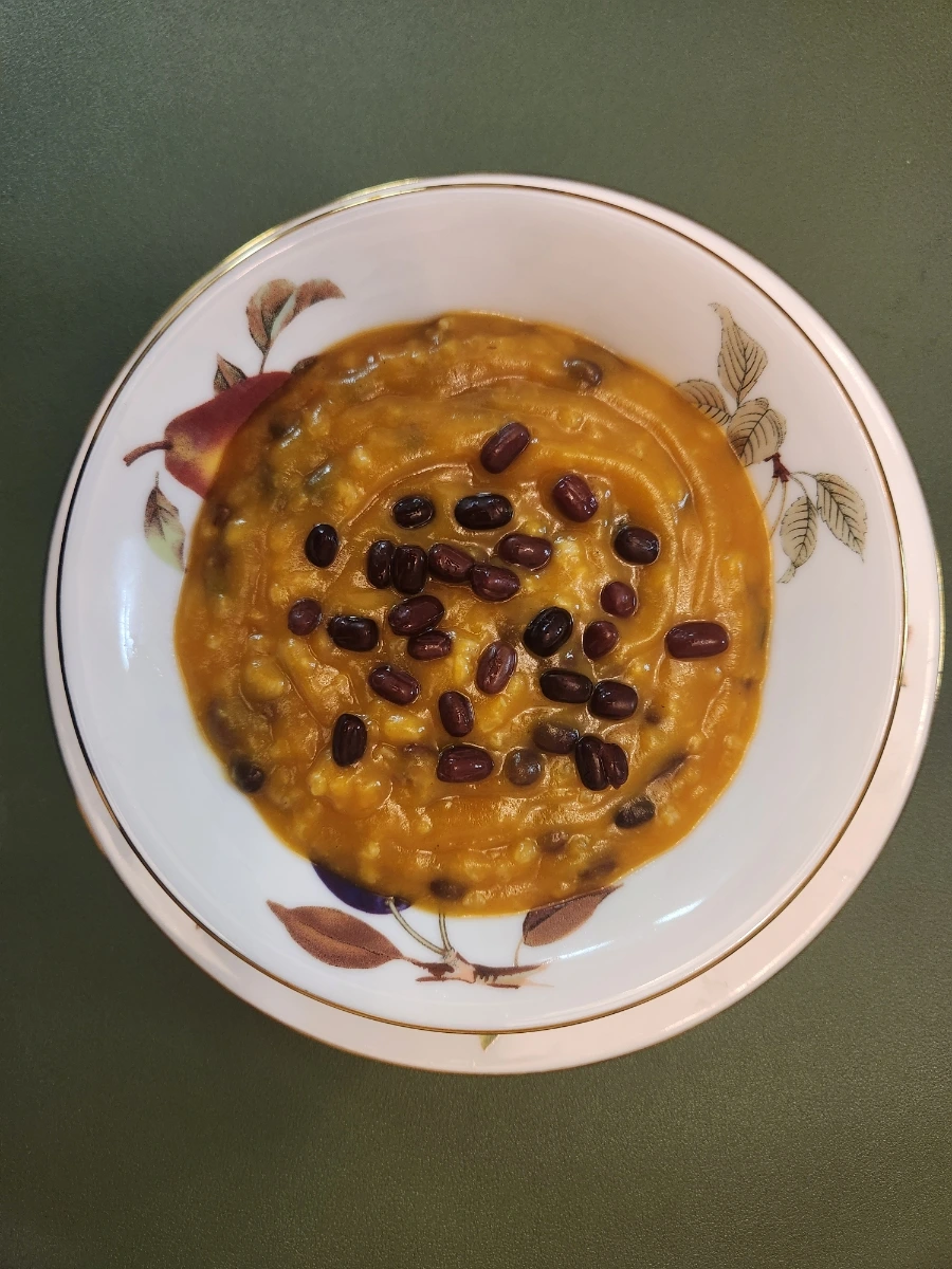 완성된 호박죽(드실 때마다 소금, 설탕으로 간하세요 ㅎ).
