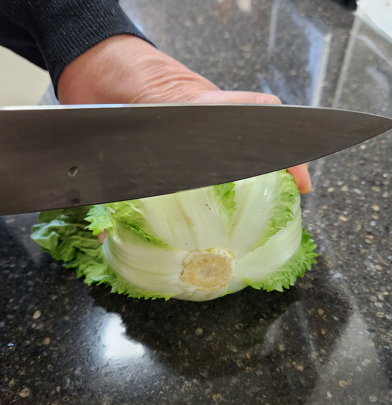 밑동을 손으로 움켜잡고 칼로 잘라서 잎들을 분리한다