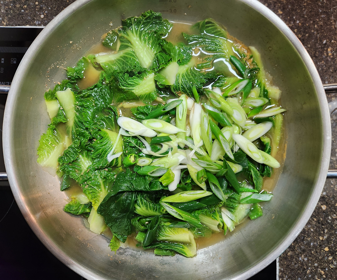 끓으면 대파를 넣고 한 번 더 끓인다. 필요하면 소금으로 간을 본다.