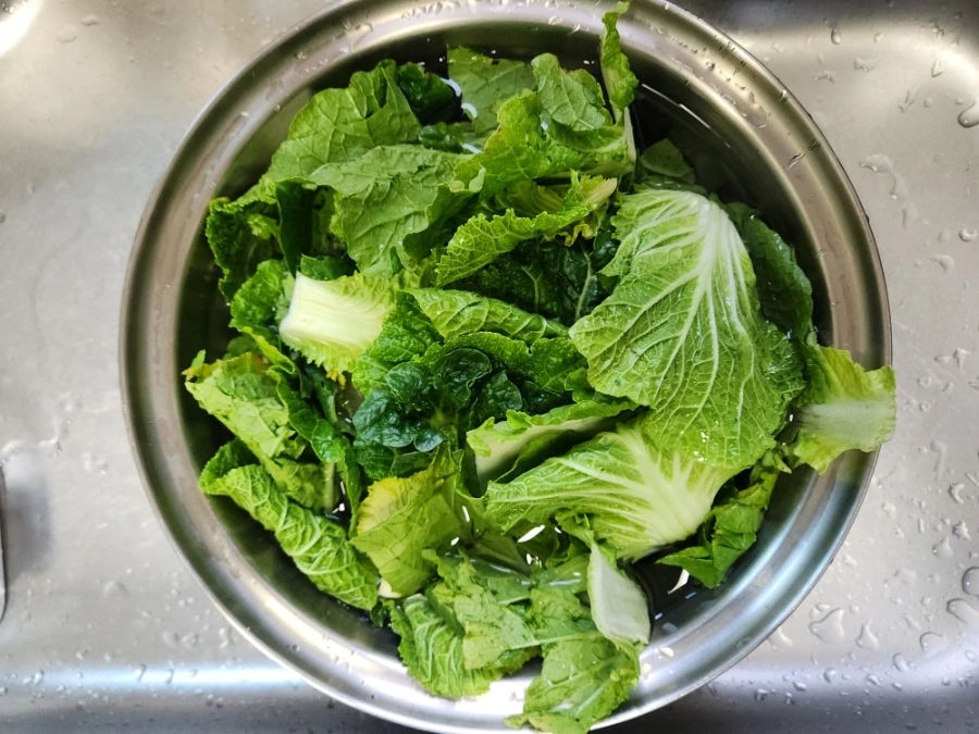 봄동을 3차례 흐르는 물에 씻어 깨끗하게 준비한다.