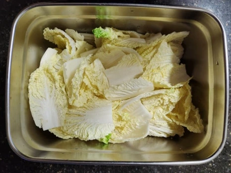 묵은지가 없을 때는 알배추를 20여분 소금에 절여 준비한다.