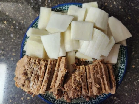청국장과 무를 크게 썰어 준비한다.