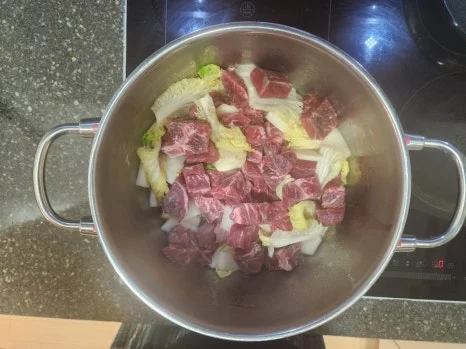 . 청국장 300g, 된장 3Ts, 소고기 치맛살(취향따라 양조절가능), 무 500g, 두부 1모, 소금에 절인 알배추 1포