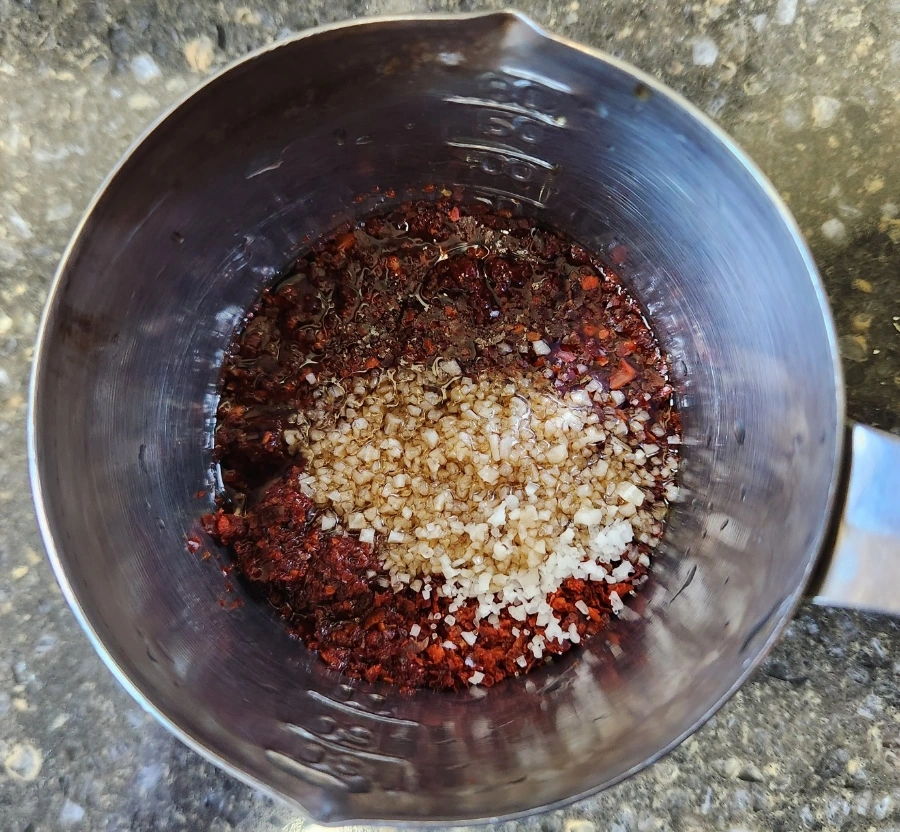 고추가루, 다진 마늘, 소금으로 양념을 준비한다.
