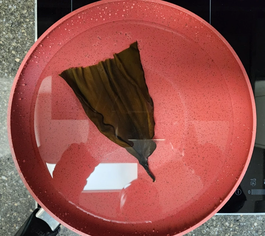 물에 다시마를 넣고 끓으면, 중불로 10분 더 끓여 육수를 만든다.