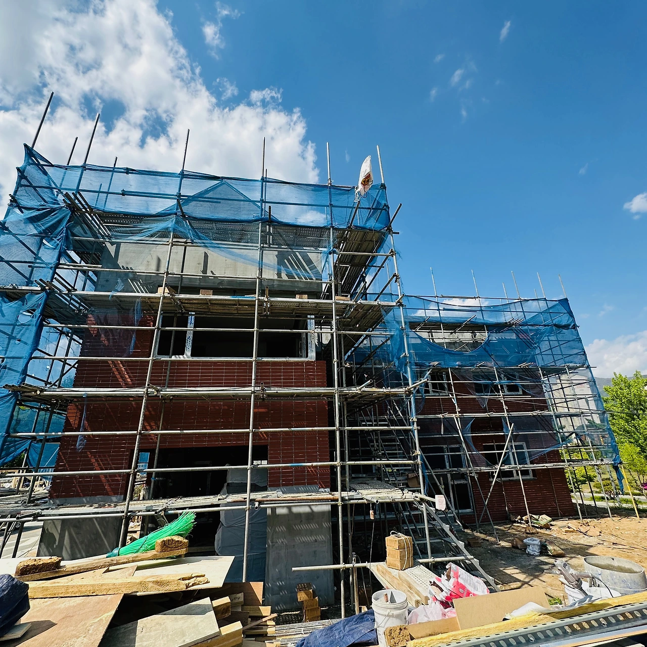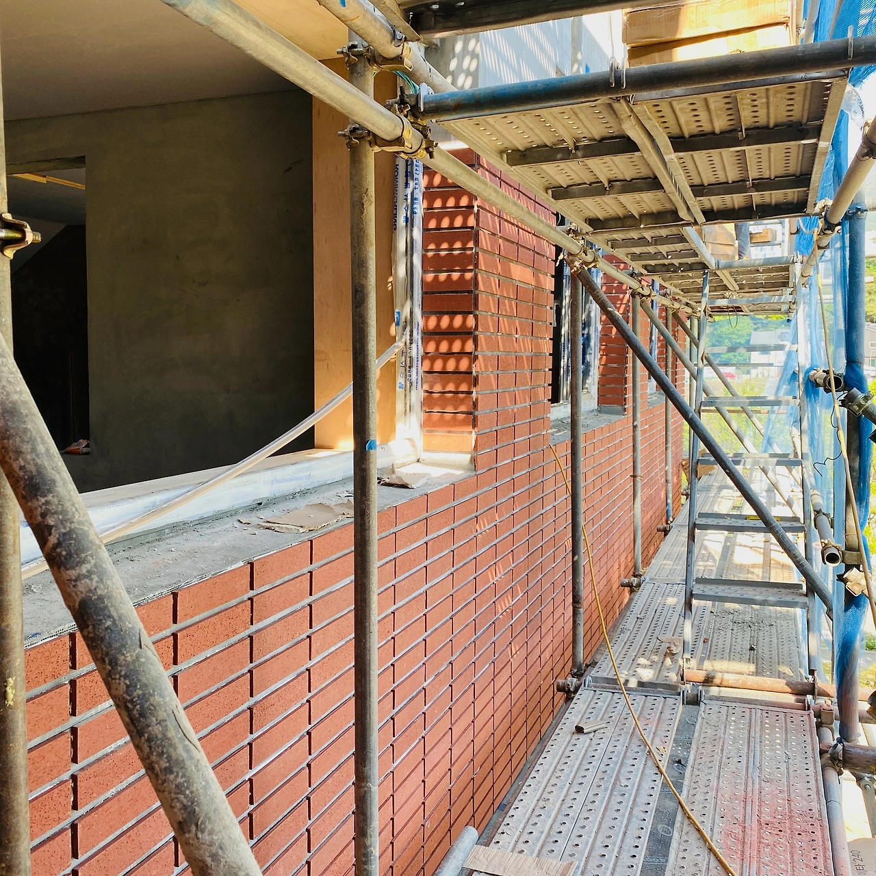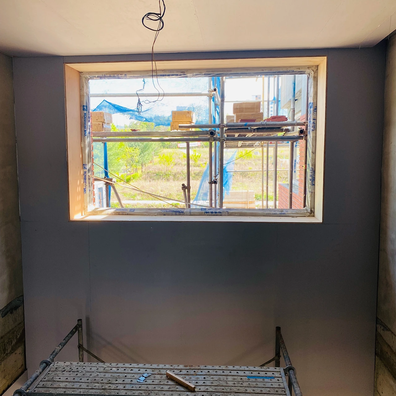 외장재 붙이는 속도가 장난이 아니다. 평활도가 좋아 작업이 거침이 없다. 날씨도 좋아 접착제도 잘 마르고 문제없을 것 같다.