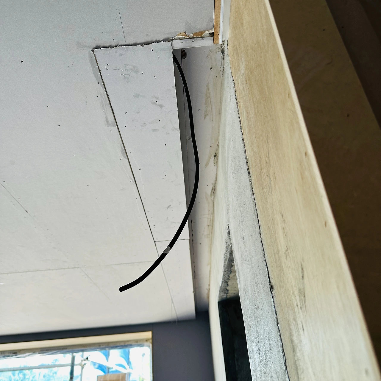실내 목공 추가작업을 진행하였다. 결국 회장님의 의견을 수용하여 1층의 튀어나온 보에서 천장까지 끊김 없이 마감하는 것으로 최종 결론을 내려서 이 부분을 수정하였다. 그리고 거실의 대형 코니스 조명의 간접조명 박스 크기도 수정하였다. 사실 이 글을 쓰는 시점에는 다시 재재수정을 하였는데 조명팀의 도면의 미흡함으로 현장에서 오해가 있었기 때문이다.