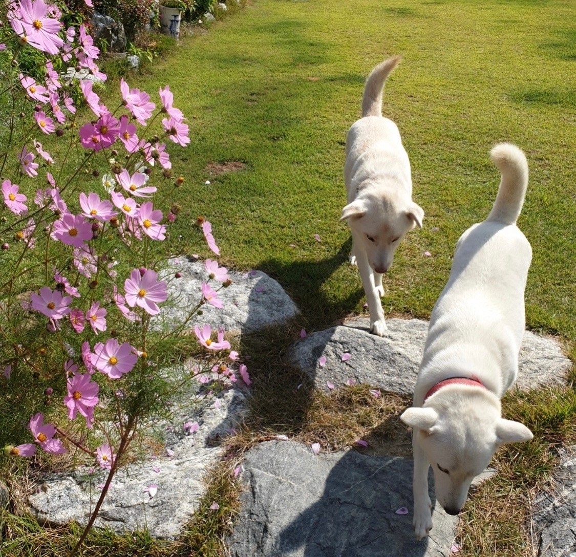 강아지들 똥을 치우고 각종 식물과 꽃들이 바람에 넘어지지는 않았는지, 옮겨 심은 식물이 몸살을 앓는지, 열매 달린 식물들이 병충해 없이 잘 크고 있는지도 확인도 해야 한다.