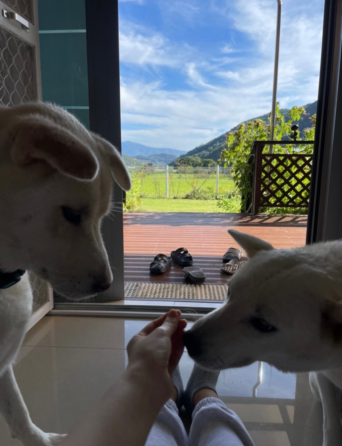 일어나자마자 물 한 모금 마시고 강아지들 밥 주기부터 시작한다.
