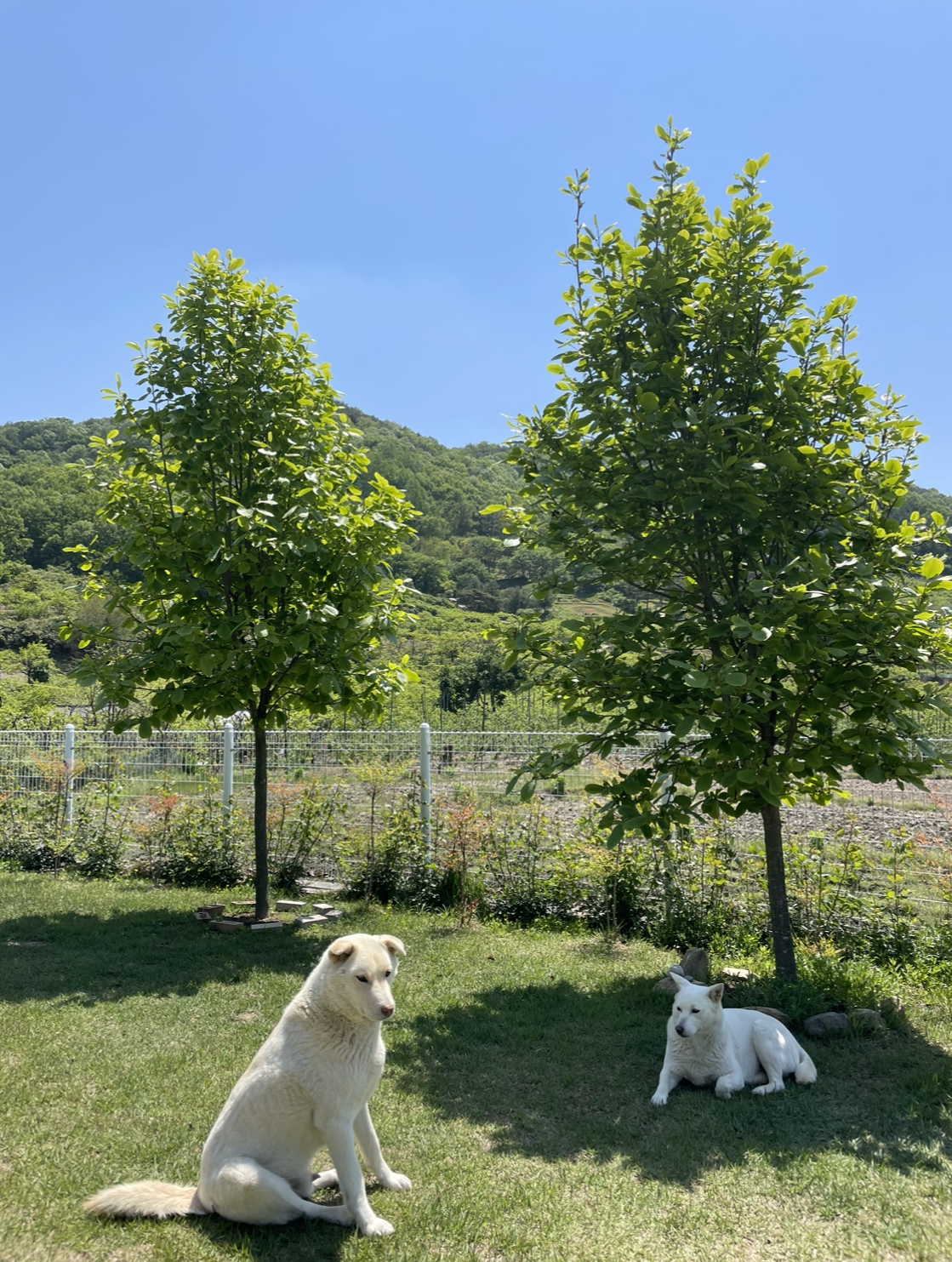 우리는 비바람을 다 막아주고 겨울에는 보온이 되는 강아지들의 튼튼한 견사가 야외에 따로 있다.