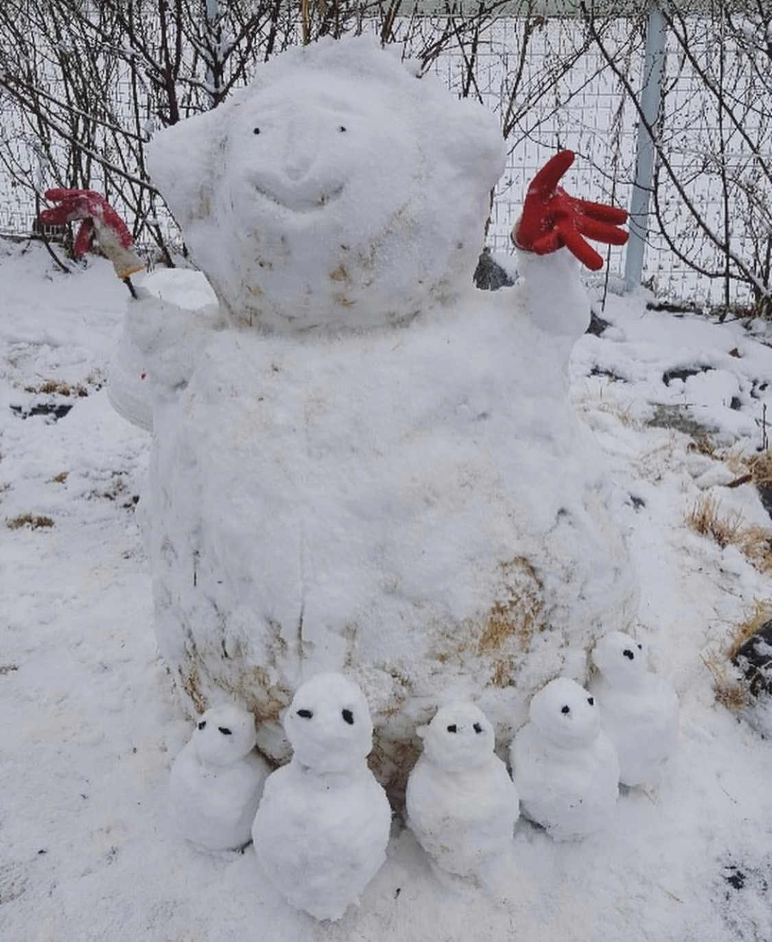 부모님과 함께 아주 커다란 눈사람을 만든 뒤