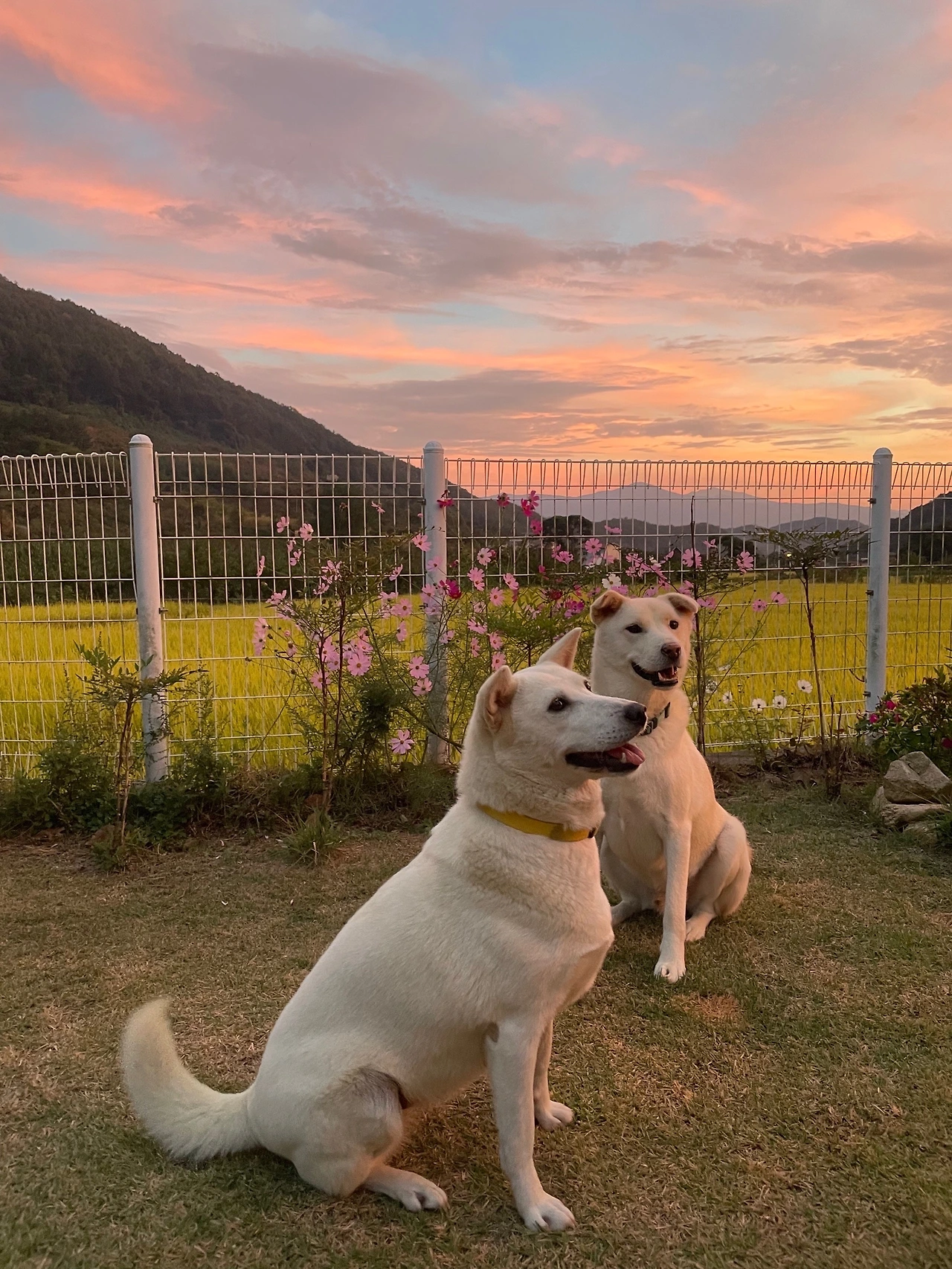 집 마당을 강아지와 발맞춰 걸으며 부드러운 털을 만지며 뛰어놀면 이 세상에서 더 바랄 것이 없다.