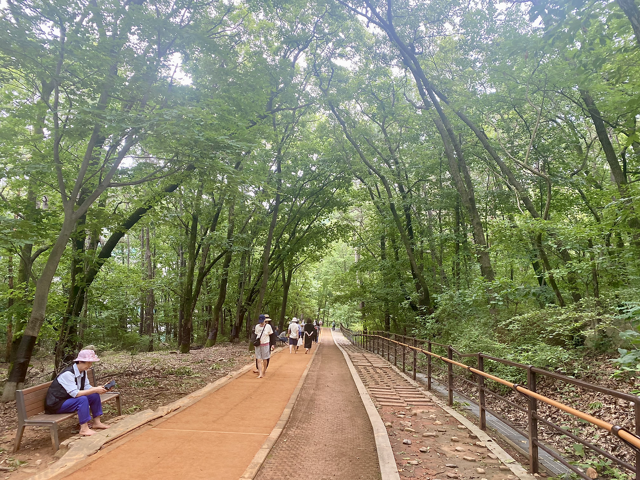 평일 오후였음에도 산림욕장엔 많은 군포시민들이 휴식을 취하고 있었다. 여름이 본격화돼 기온이 제법 높은 날이었는데도 나무가 울창해 선선했다. 산림욕장 입구에서 조금만 걸어 올라가니 다수의 시민들이 맨발로 길을 걷는 진풍경을 볼 수 있었다. 황톳길을 조성해놓은 탓이었는데 남녀노소를 불문하고 신발과 양말을 벗고 저마다 느릿느릿 축축한 흙길을 걸었다. 눈코뜰 새 없이 바쁜 도심의 하루, 그 한 켠은 시간이 멈춘 듯한 평온함으로 채워졌다.