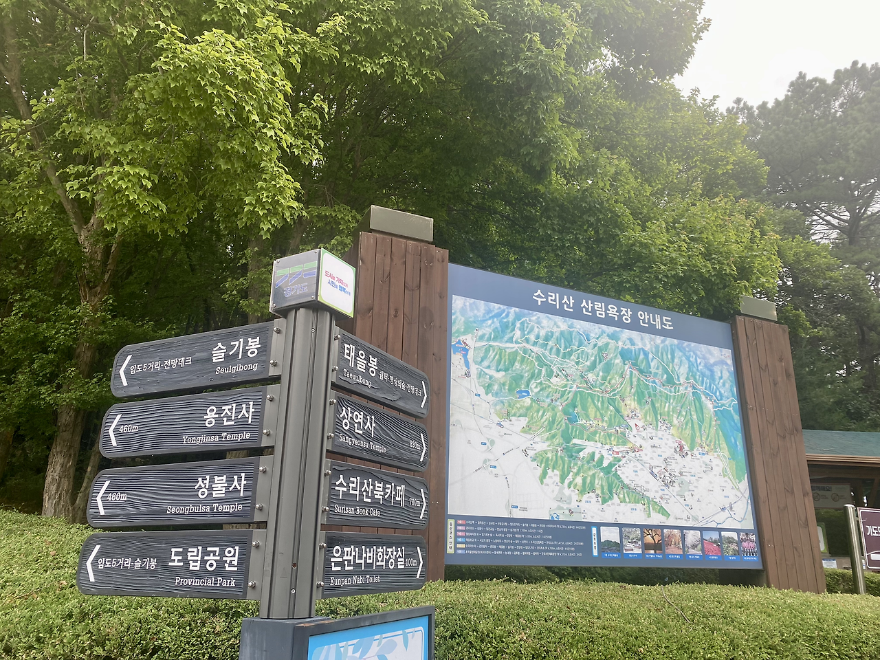 30여년 평생을 산 아래에서 살았으면서도 등산을 좋아하지 않는다. 그래도 매일 군포를 오가면서 수리산을 가보지 않는 것은 직무유기와 같은 기분이었다. 수리산에서 가장 높은 봉우리인 태을봉이 489.2m로 도무지 엄두가 나지 않았지만, 도심과 맞닿아있는 수리산은 그만큼 접근성이 뛰어나다는 게 큰 장점이다. 수리산의 초록은 만끽할 수 있으면서도 차로 쉽게 갈 수 있는 지점이 적지 않은데, 그 중 한 곳이 군포중앙도서관 옆에 있는 수리산 산림욕장이다. 6개의 등산 코스 중 1.1㎞ 남짓 가장 짧은 코스의 시작점이기도 하다.