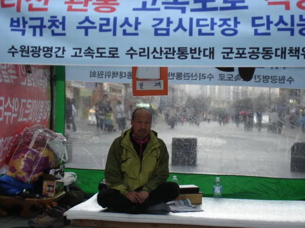 지난 2011년 군포시장실 앞에서 단식 농성이 이뤄졌다. 수원~광명 민자 고속도로가 수리산을 관통해 지나가는 계획이 발표되자, 이에 반대하는 목소리를 내면서 단식까지 불사한 것이다. 2007년부터 수원~광명 민자도로는 수리산 일대를 5㎞ 구간으로 관통하는 노선으로 계획돼왔는데 수년간 시민단체들의 거센 반대에 부딪혔다. 공사 과정에서 산사태 우려가 크고 자연 환경이 파괴돼 도립공원으로서의 가치를 잃을 것이라는 이유에서였다. 반대 목소리는 일부에 국한되지 않고 시 전반에 큰 공감대를 형성했다. 수리산이 군포시민들에게 어떤 존재인지 단적으로 보여준 사건이었다.