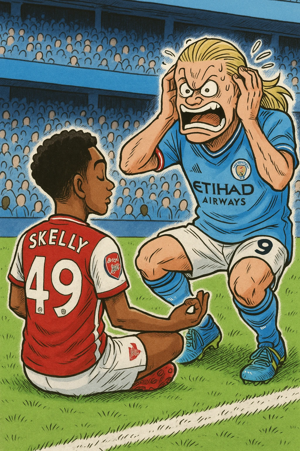 가장 화제가 되었던 장면은 단연 맨체스터 시티전이었다. 스켈리는 이 경기에서 첫 골을 기록한 뒤, 엘링 홀란이 종종 선보이는 명상 세리머니를 따라 했다. 그 행동은 단순한 도발이 아니라, 두려움을 전복하는 유쾌한 상상력이었다. “나는 너와 싸우는 어린아이가 아니라, 너와 같은 세계를 살아가는 하나의 존재다”라는 선언처럼 들렸다.