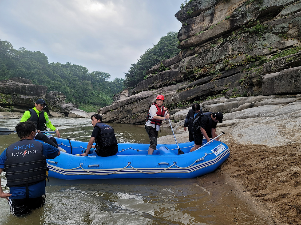 우리는 성동구상공회 임원 DMZ 워크숍으로 1박 2일로 철원에 왔다. 주최 측의 컨셉은 안보관광인 듯싶었다. 첫날 오전에는 제2 땅굴, 평화전망대, 월정리역 관람이 있었다. 점심을 먹고 래프팅을 한 것이었다.