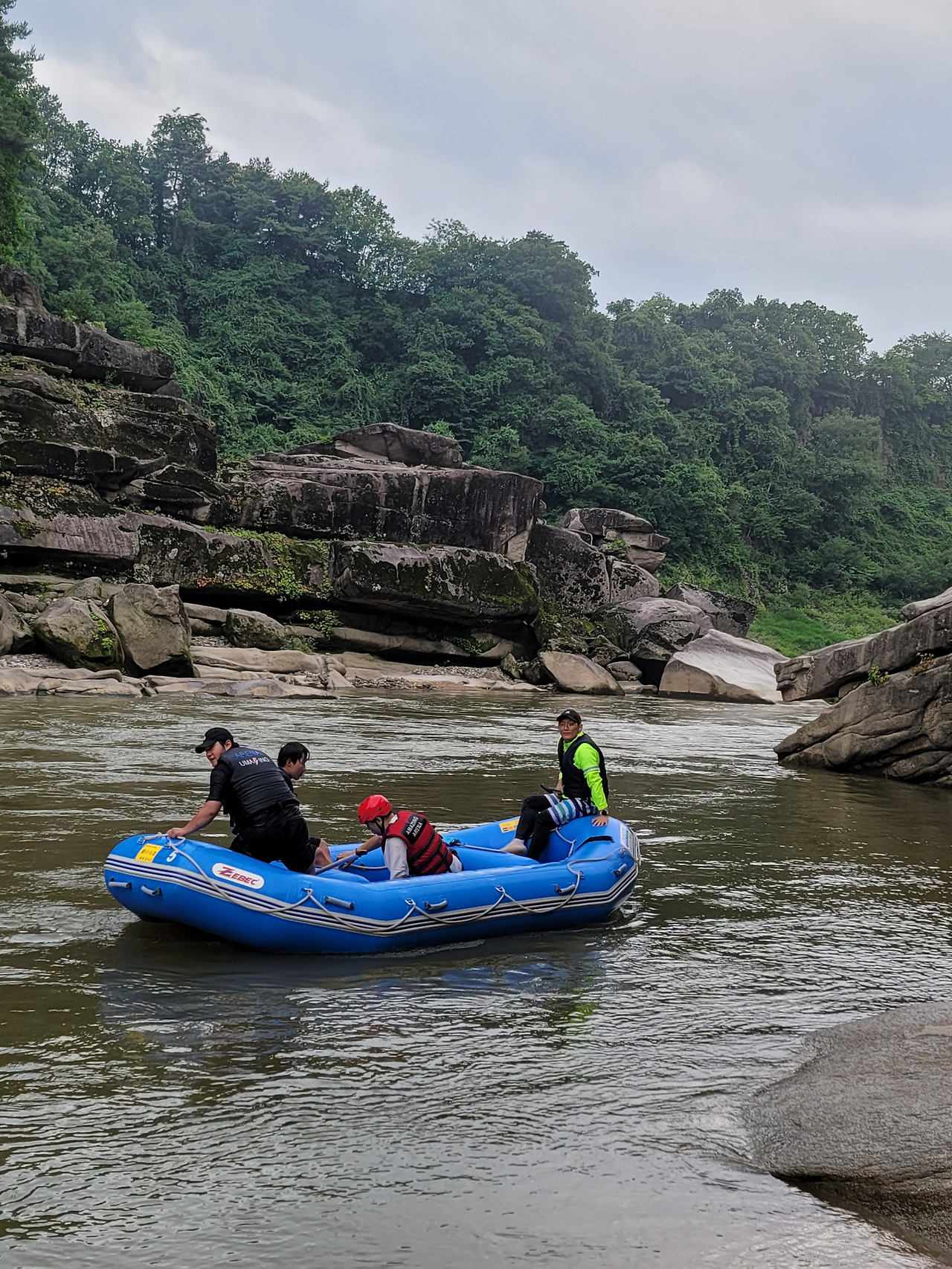 함께 래프팅을 하던 3조 사람들은 보이지 않았다. 오직 길제 형님만이 다른 보트 끈을 붙잡고 있었다. 나머지 조원들은 어디 있을까? 그제야 여유가 생겨 조원들의 안전을 확인했다. 그 사이, 내가 잡고 있는 보트와 내 몸은 서서히 강물 하류로 떠내려가고 있었다.