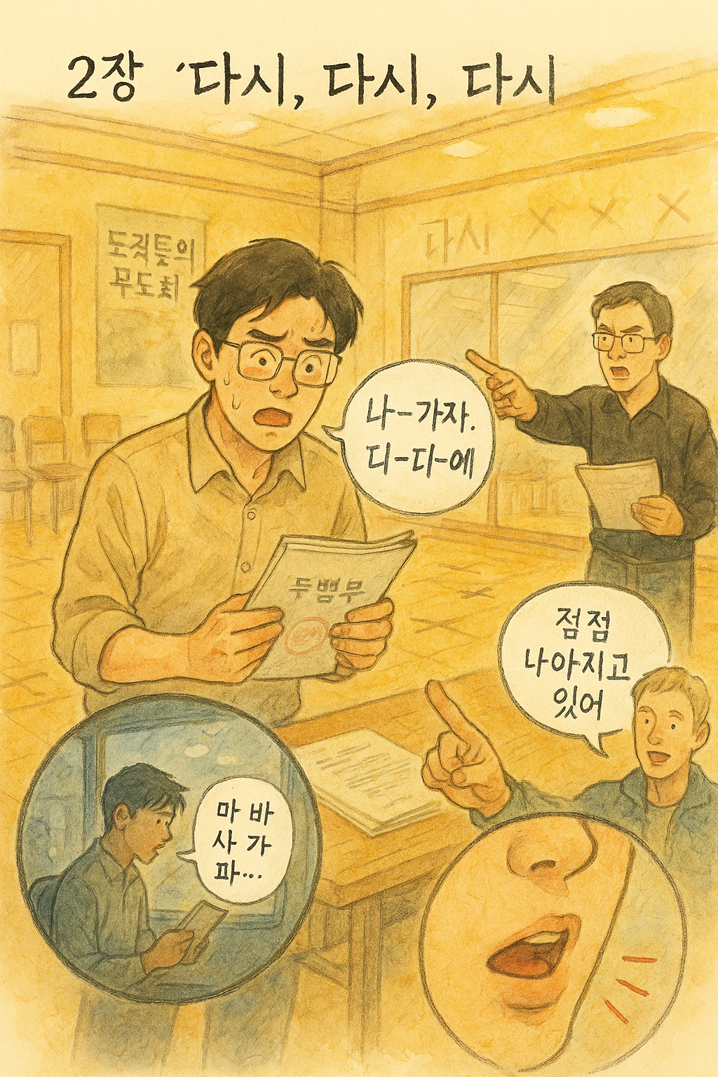 공연의 여운이 가시지 않은 채 집으로 돌아갔다. 이틀 동안 그 순간들이 머릿속을 맴돌았다. 웃음, 시선, 부성애. 이제 두려움 대신 가슴에 피어오른 건 작은 자신감이었다. 그 자신감으로, 다음 도전을 꿈꿀 수 있었다