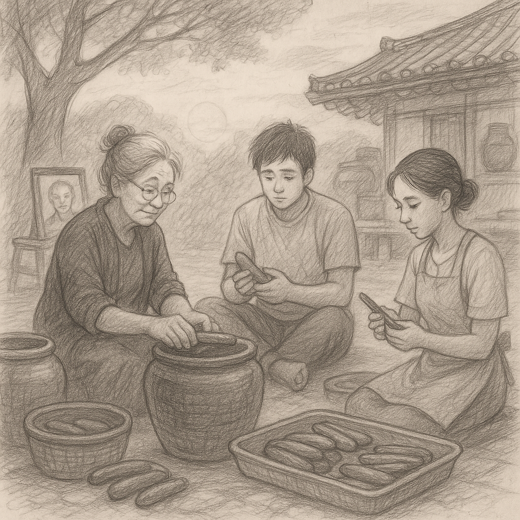 내 예상대로 삼촌 역시 오이지를 반기지 않았다. 그러나 어머니 비위를 맞추기 위해서 마지못해 오셨던 것이다. 고추장아찌, 동치미, 물김치도 마찬가지였다.
